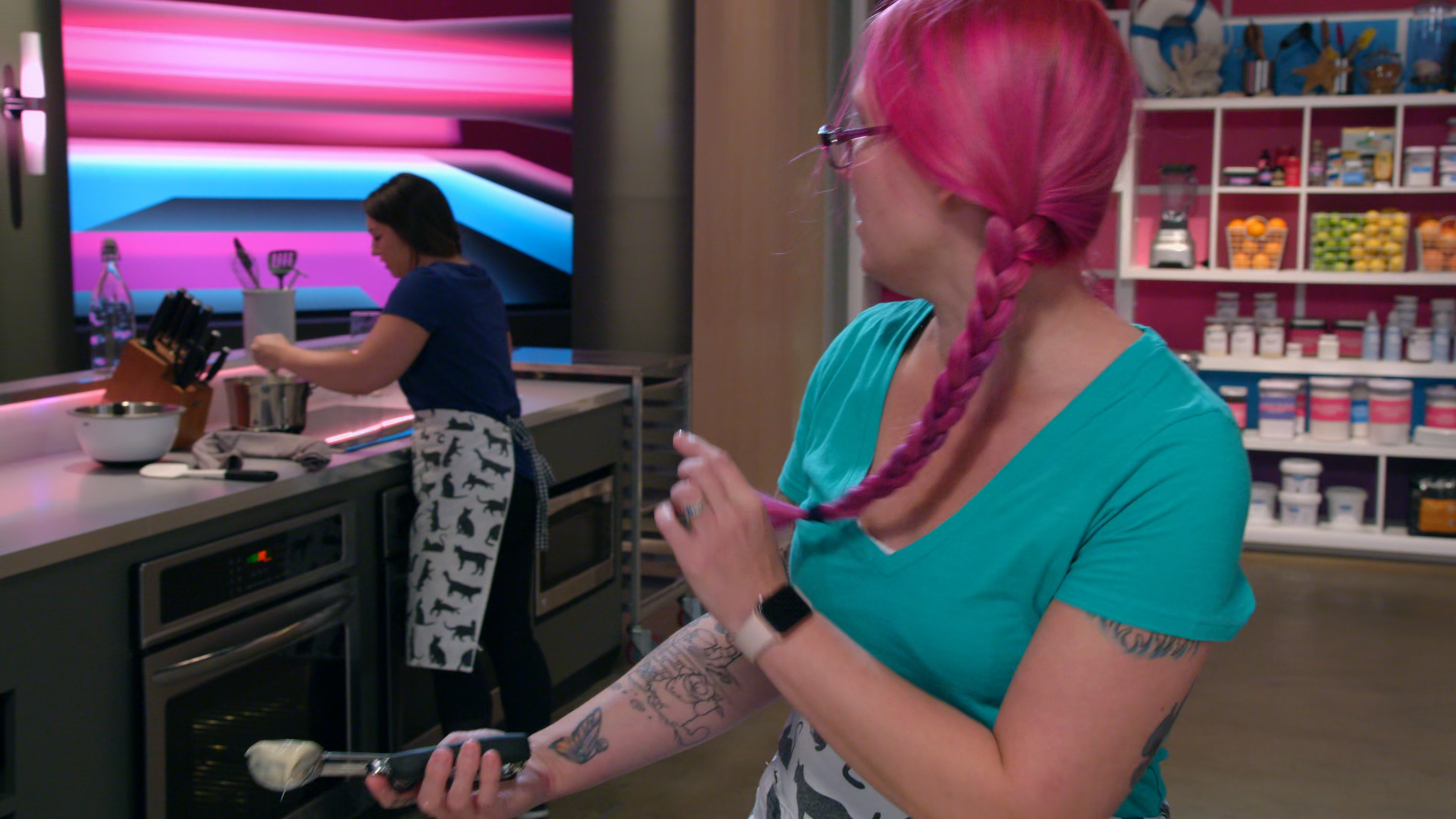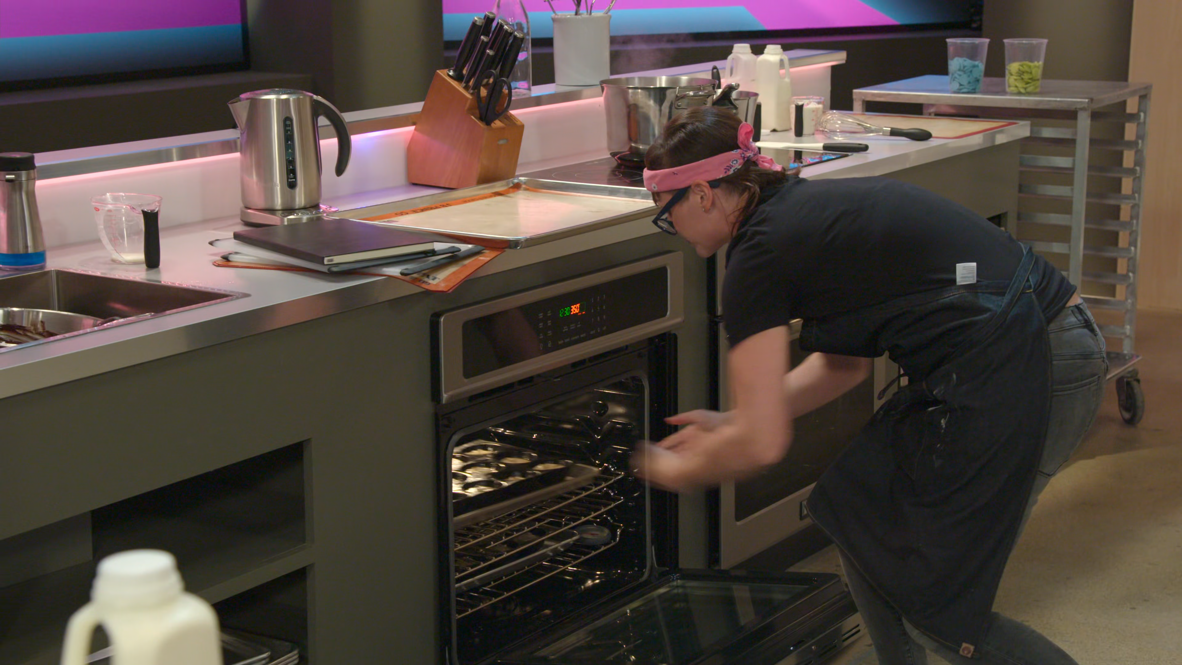 A baking competition with 4 teams, 3 rounds, 2 cakes and 1 winner of $10,000.