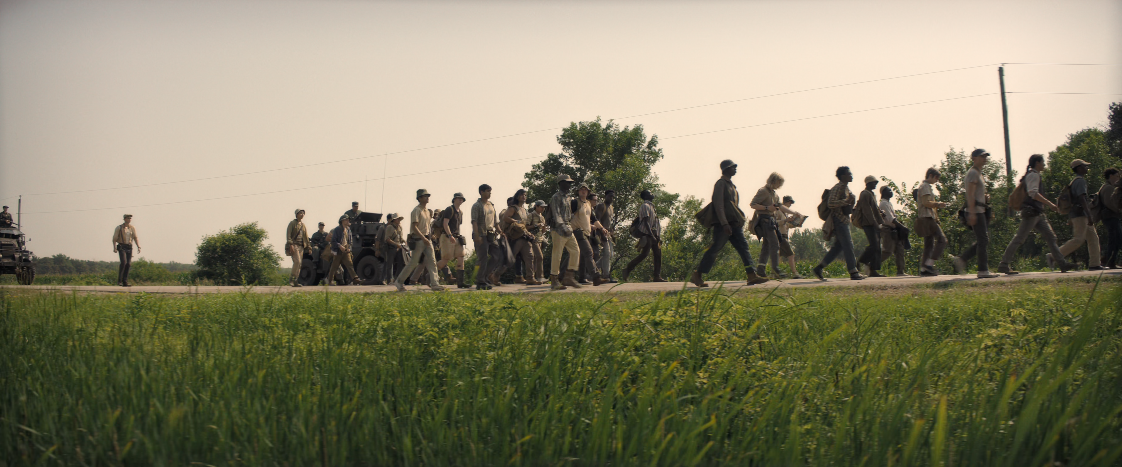 A group of teenage boys compete in an annual contest known as "The Long Walk," in which they must maintain a certain walking speed or get shot.
